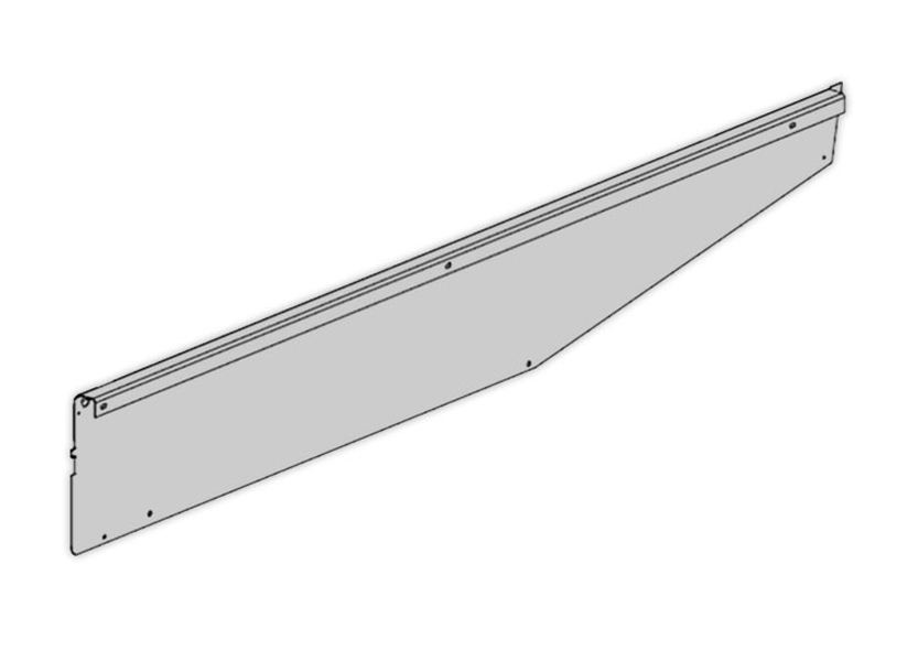 Левая (при взгляде на платформу спереди) оцинкованная боковая стенка с маркировкой сигнальной черно-желтой полосой.